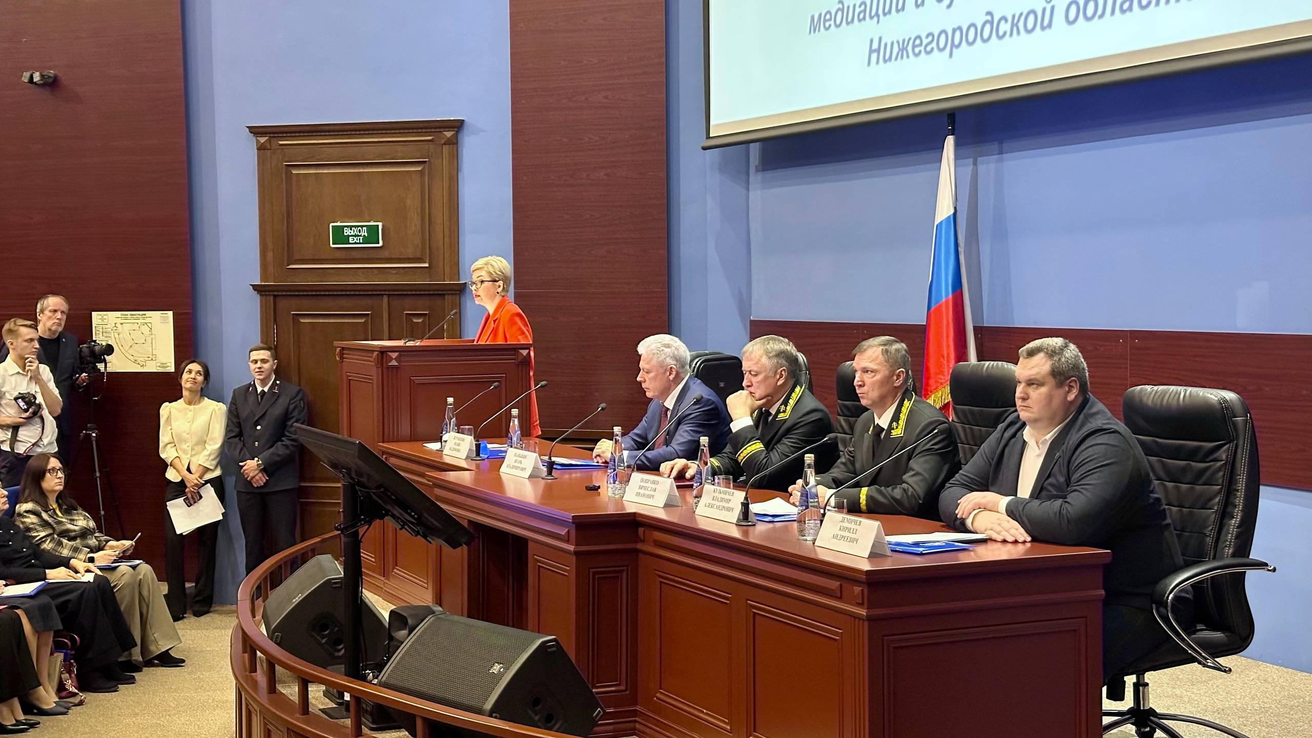 26 ноября 2025 года в Нижегородском областном суде прошла Всероссийская научно-практическая конференция «От будущего медиации к медиации будущего». Соорганизаторами мероприятия выступили Четвёртый апелляционный суд общей юрисдикции, Нижегородский областной суд, Аппарат полномочного представителя Президента РФ в ПФО, Приволжский филиал РГУП им. В.М. Лебедева и Совет по развитию медиации и судебного примирения в Нижегородской области. Конференция собрала более 200 участников: судей, представителей органов власти, преподавателей, судебных примирителей, медиаторов и студентов. От Четвёртого апелляционного суда общей юрисдикции в конференции приняли участие исполняющий полномочия председателя судебной коллегии по гражданским делам Владимир Александрович Кузьмичев и судья Юлия Александровна Рогачёва. В своем обращении Владимир Александрович подчеркнул значимость развития медиации как современного инструмента мирного урегулирования споров. Отметил, что медиация помогает снижать конфликтность, сокращать сроки рассмотрения дел и позволяет сторонам сохранять деловые и личные отношения, а также обратил внимание на необходимость дальнейшего совершенствования законодательства и организационных механизмов, обеспечивающих эффективное применение примирительных процедур.